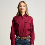 SOMERSET | Womens Half Button Long Sleeve Work Shirt - Burgundy